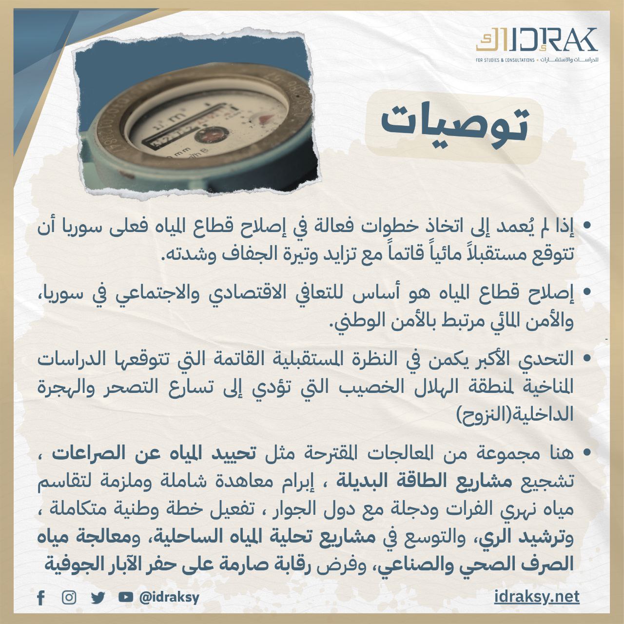 يحاول هذا التقرير تسليط الضوء على طبيعة الأزمة، كما يتناول أبرز التحديات، ويمر سريعاً على الجهود المبذولة في هذه الفترة لاستصلاح قطاع المياه، مع اقتراح توصيات وإجراءات على المدى القصير والمتوسط، مستفيداً من تجارب دولية ناجحة في إدارة الشح المائي، لتعزيز الأمن المائي والاستدامة في سوريا.